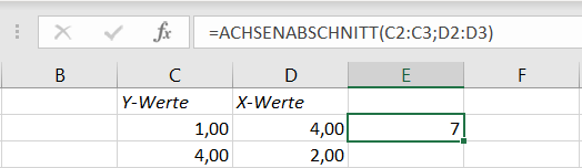 =ACHSENABSCHNITT(C2:C3;D2:D3) => 7